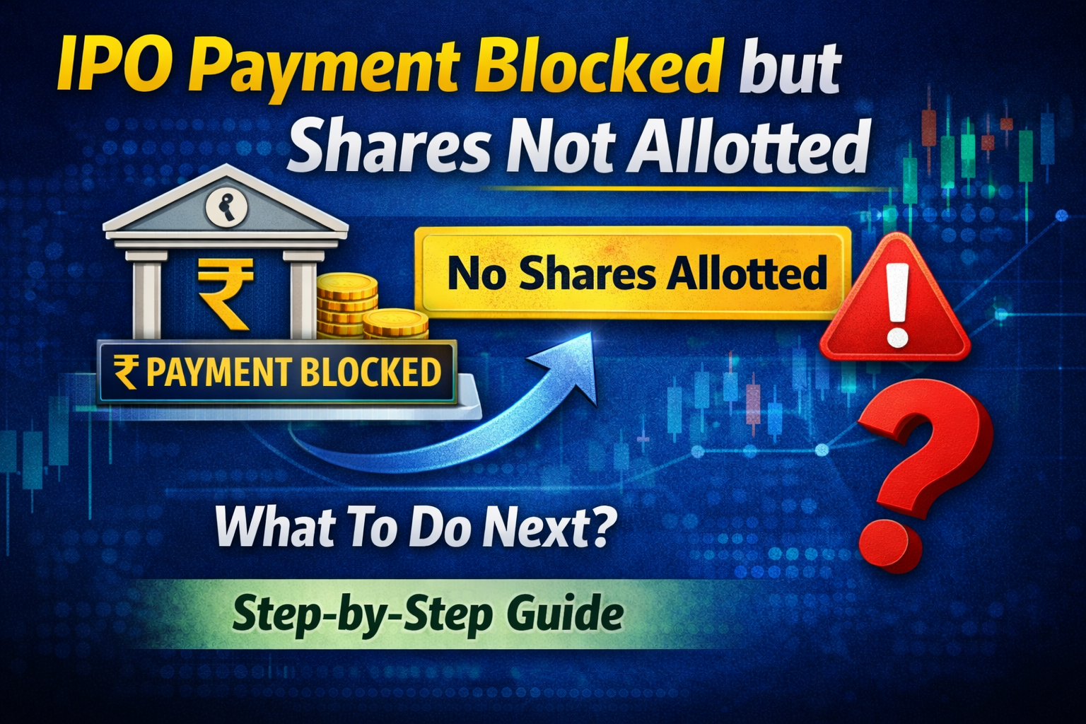 Sometimes investors notice that their IPO application amount is still blocked in the bank account even though they did not receive any shares in the allotment. This guide explains how IPO payment blocking works, why the funds may remain blocked after allotment, when the money is usually released, and the steps investors should take to check the UPI mandate status or contact the bank and registrar if the refund is delayed.