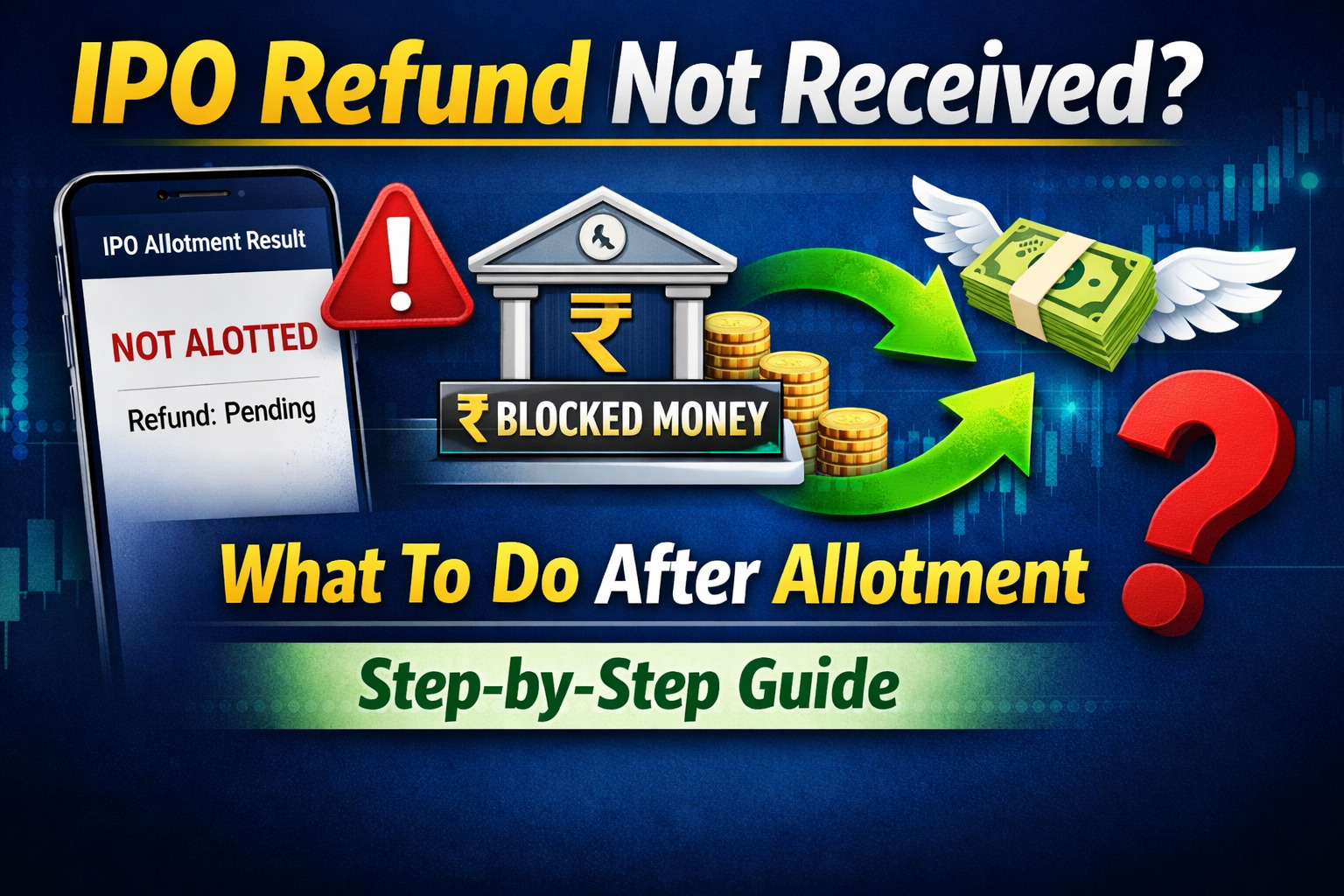 Many investors worry when their IPO refund does not arrive immediately after the allotment announcement. This guide explains the normal IPO refund timeline, how the fund blocking system works through UPI and ASBA, why refunds sometimes get delayed, and what steps investors should take if the blocked amount is not released within the expected time.