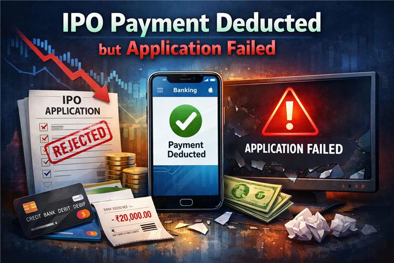 Sometimes investors notice that the IPO application amount is deducted from their bank account even though the application was not submitted successfully. This guide explains why IPO payment may be deducted due to technical errors or transaction issues, what happens to the money in such cases, how to check your application and mandate status, and the steps you should take to get the refund quickly if the IPO application fails.